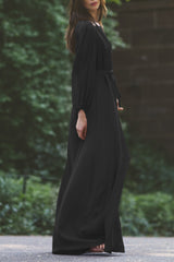 Poet Sleeve Maxi Dress. Cut in a loose, flowy silhouette with optional tie belt.